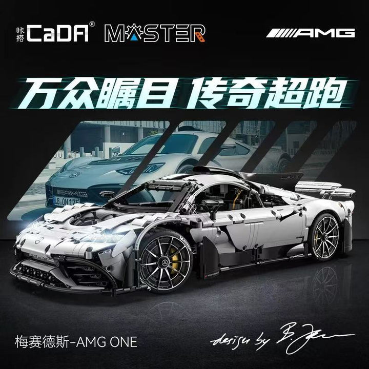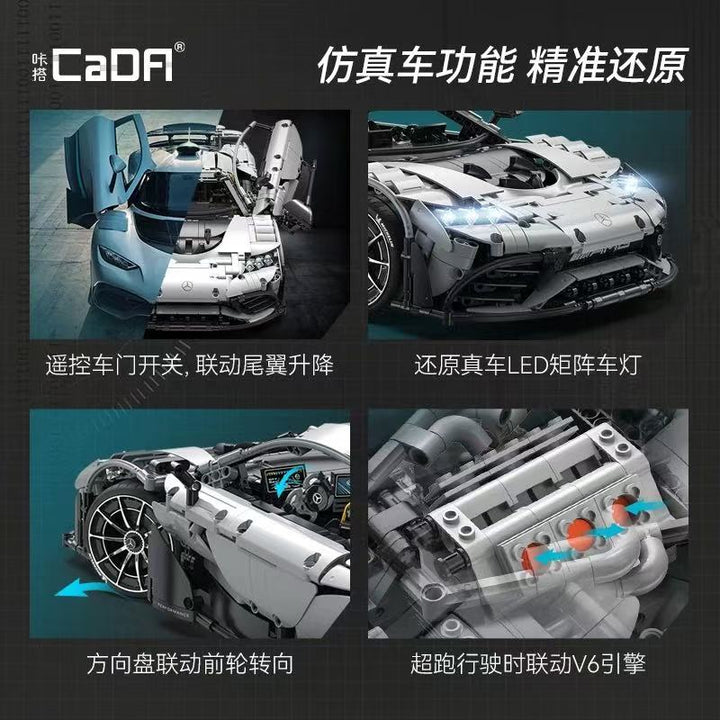 Build a 1:8 scale detailed model of the legendary Mercedes-AMG ONE hypercar, featuring authentic aerodynamic curves, racing livery, and functional steering.